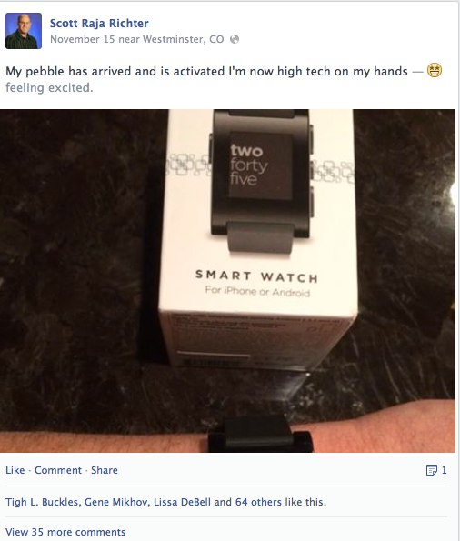 On Facebook one day Scott Richter posted about his Pebble watch. I had not heard of this before and being the nerd I am I had to have it.