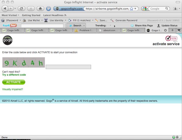 I was quickly reminded of those idiots I used to do tech support for on Windows who would ask retarded questions like "It's asking me if I am sure I want to delete THE INTERNET." (you're probably too young for that). I ignored them... mostly because I was easily able to connect to the internet from my iPhone. I just had to enter my *cough* real *cough* email address and then it asked me this retardedly long captcha (really, is this necessary?). But I was online.