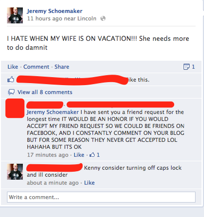 Some people take this personally and get really pissed and some people just constantly spam my wall saying they have requested.