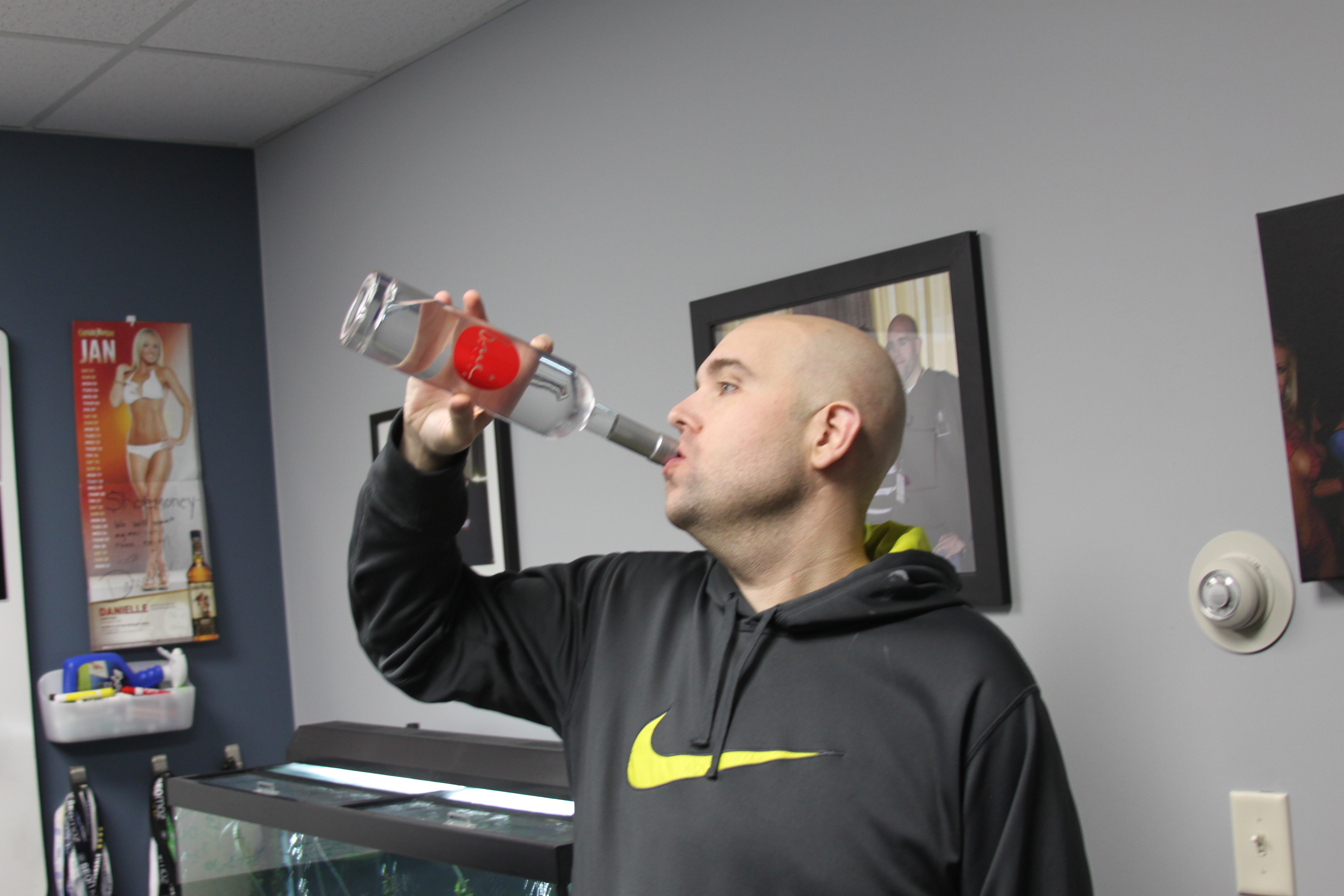 Side note - We have no idea what sort of booze is in this bottle we have a poll going around the office.